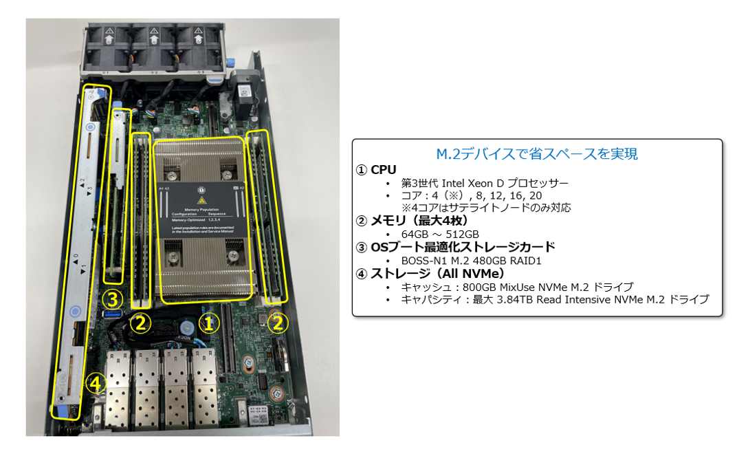コンパクトなノードだからこそ気になるのがその中身。ノードが稼働するために必要な物理リソースはどのように格納されているのでしょうか?