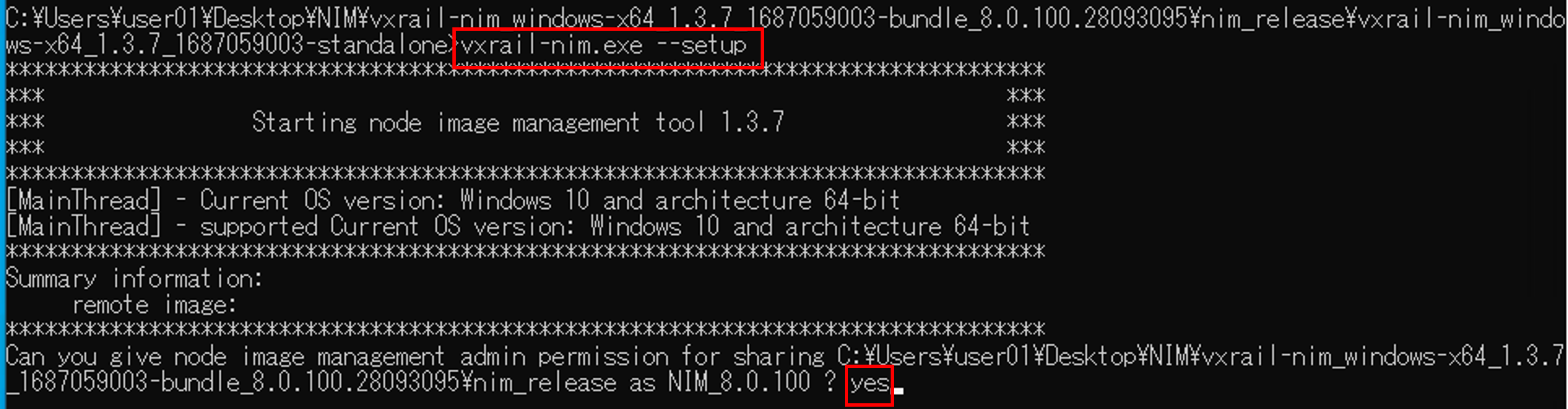 まず、コマンドプロンプトを開き、[vxrail-nim] アプリケーションが置かれているフォルダにcdコマンドで移動します。