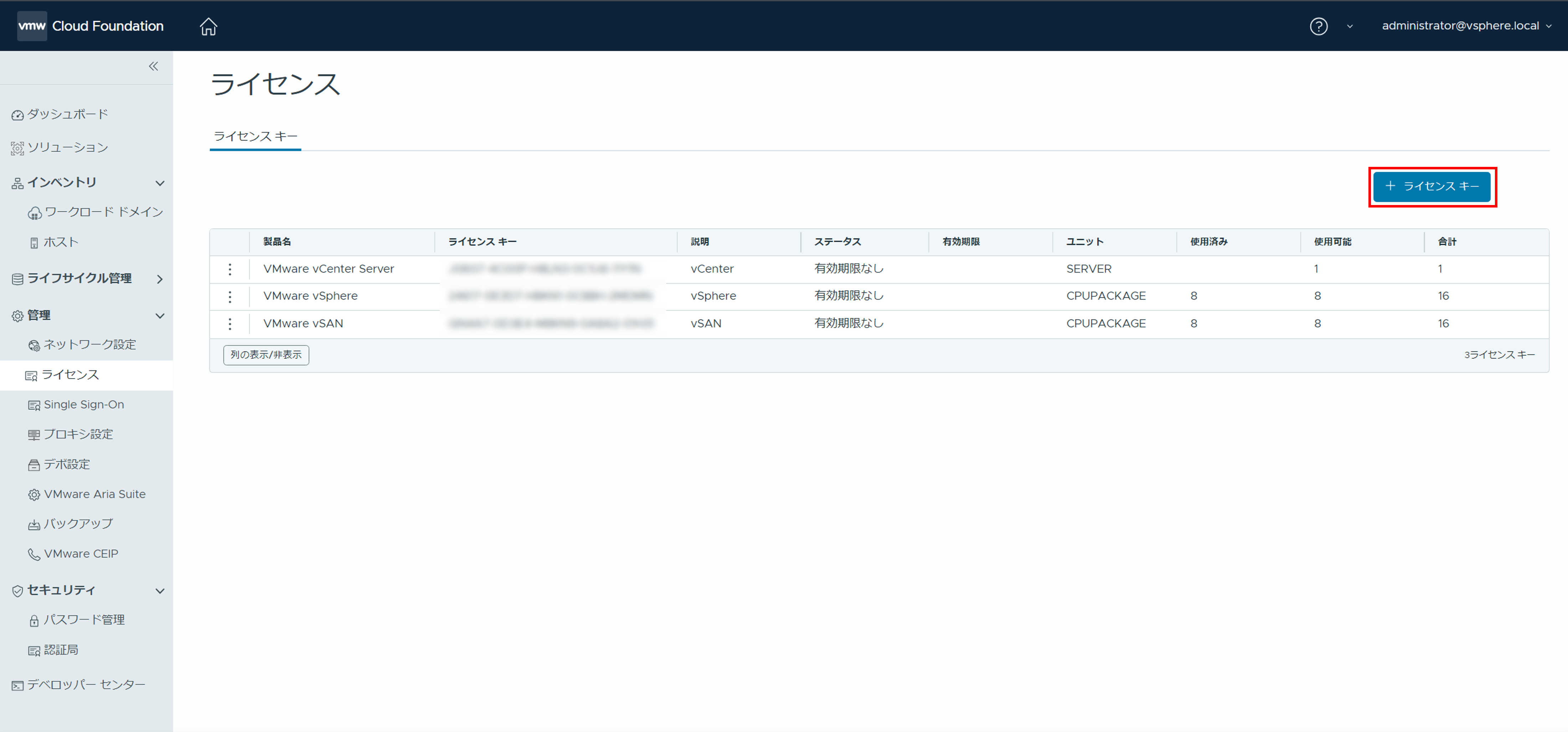 しかし、VCF on VxRailを構築すると組み込みライセンスをそのまま使用することができないため、予め購入しておいたライセンスを使用してください。