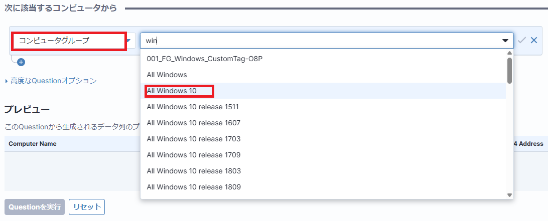 今回は「保存済みQuestion」からComputer Nameを使ってみましょう。