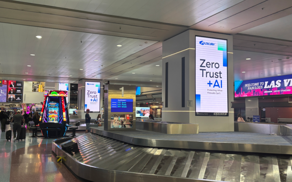 到着したラスベガス空港で早くも、Zscalerのサイネージがあり「ZeroTrust + AI」という言葉があり、AIを強く意識した内容になると感じました。