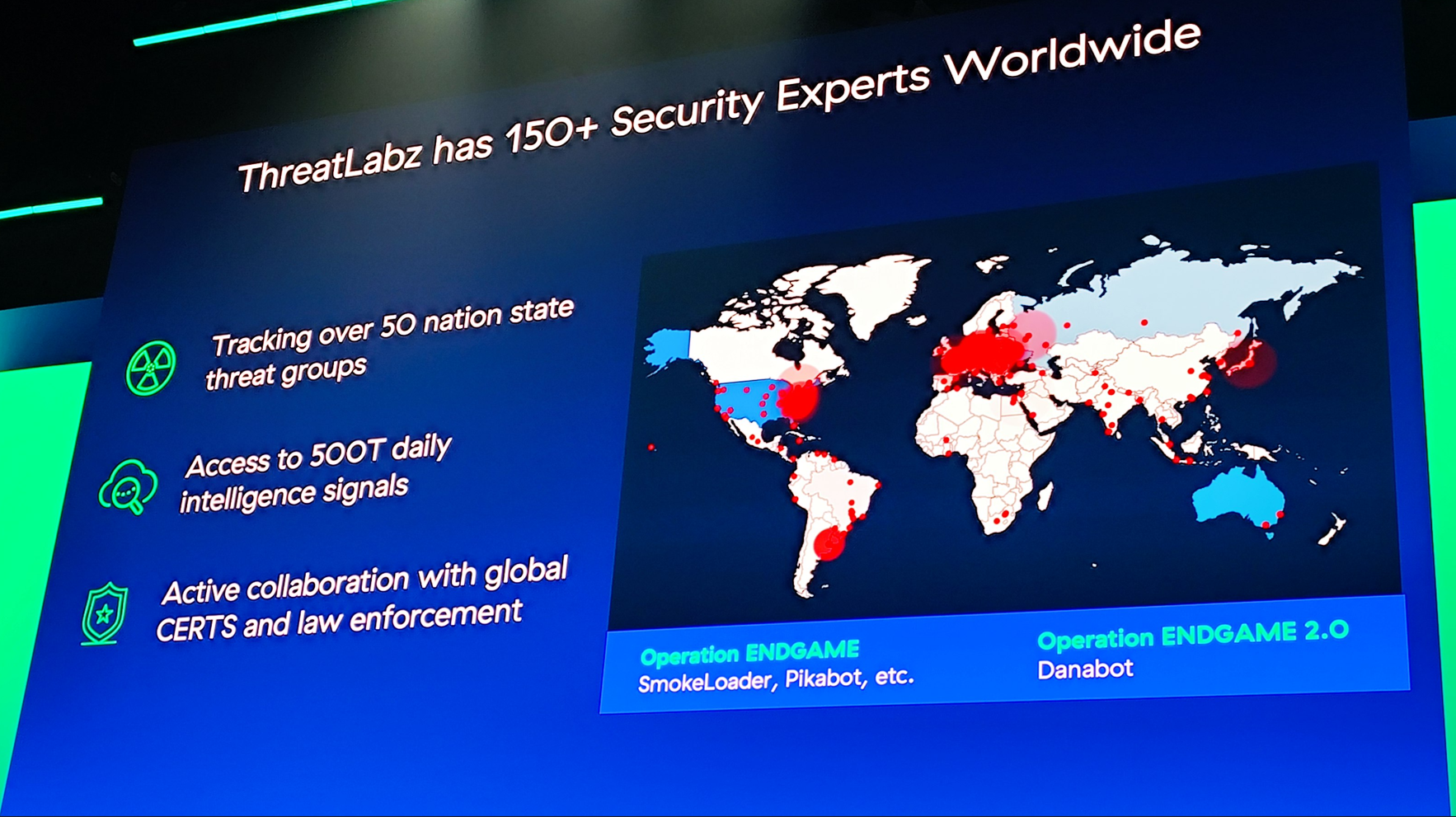 ThreatLabzというチームで50以上の国家脅威組織の追跡や世界のCSERT組織や法律組織との積極的な協力をしてセキュリティ向上に努めているとも述べました。