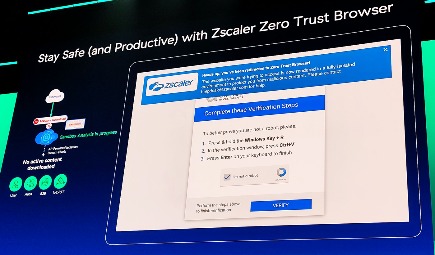ユーザーレベルでのアプリケーションレベルにおける脅威検知や脅威予測によるブラウザ分離については実際の画面なども発表されていました。