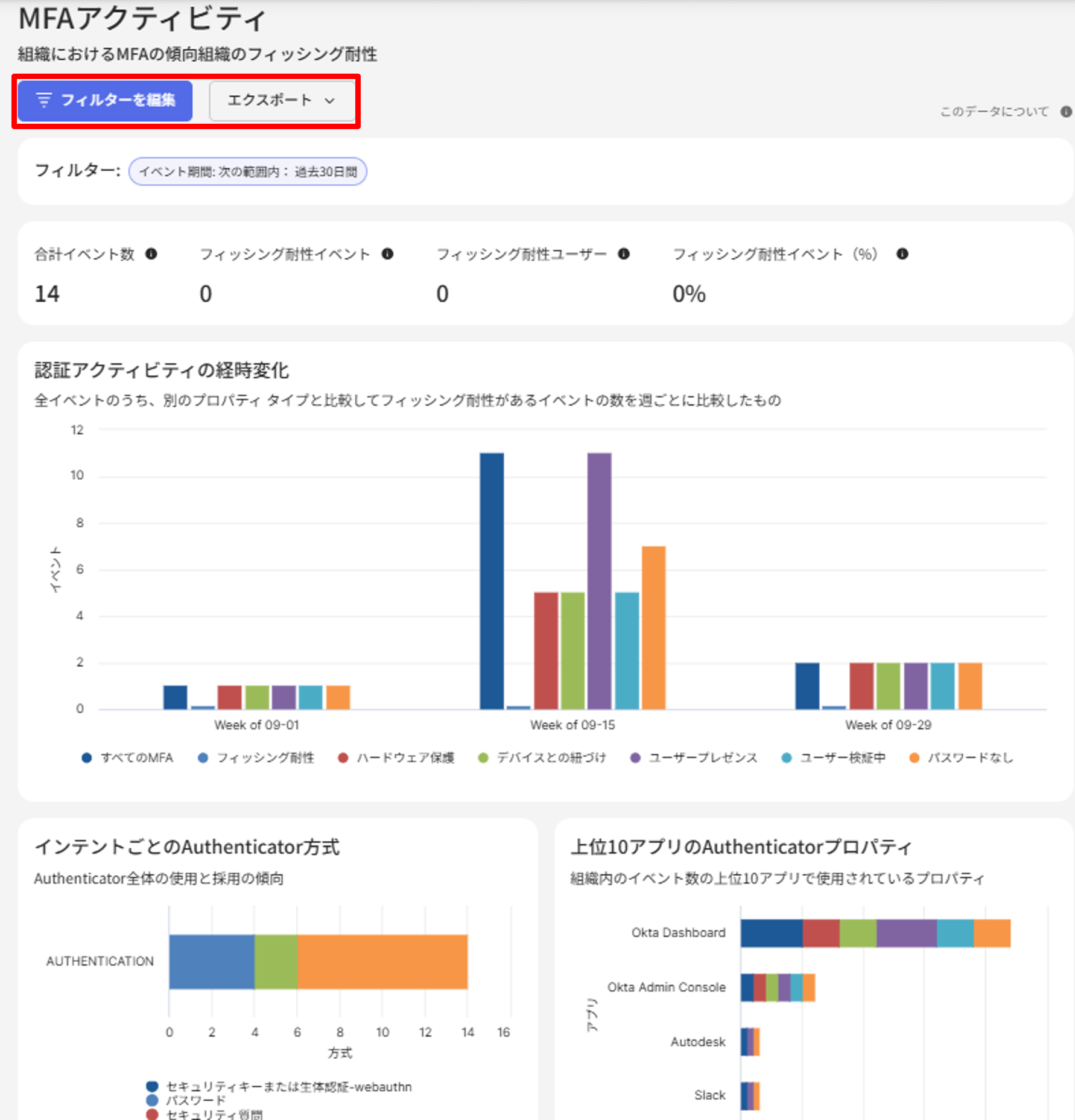 期間をフィルタで指定し、MFAに関わるイベントをグラフ形式で表示させることができます。