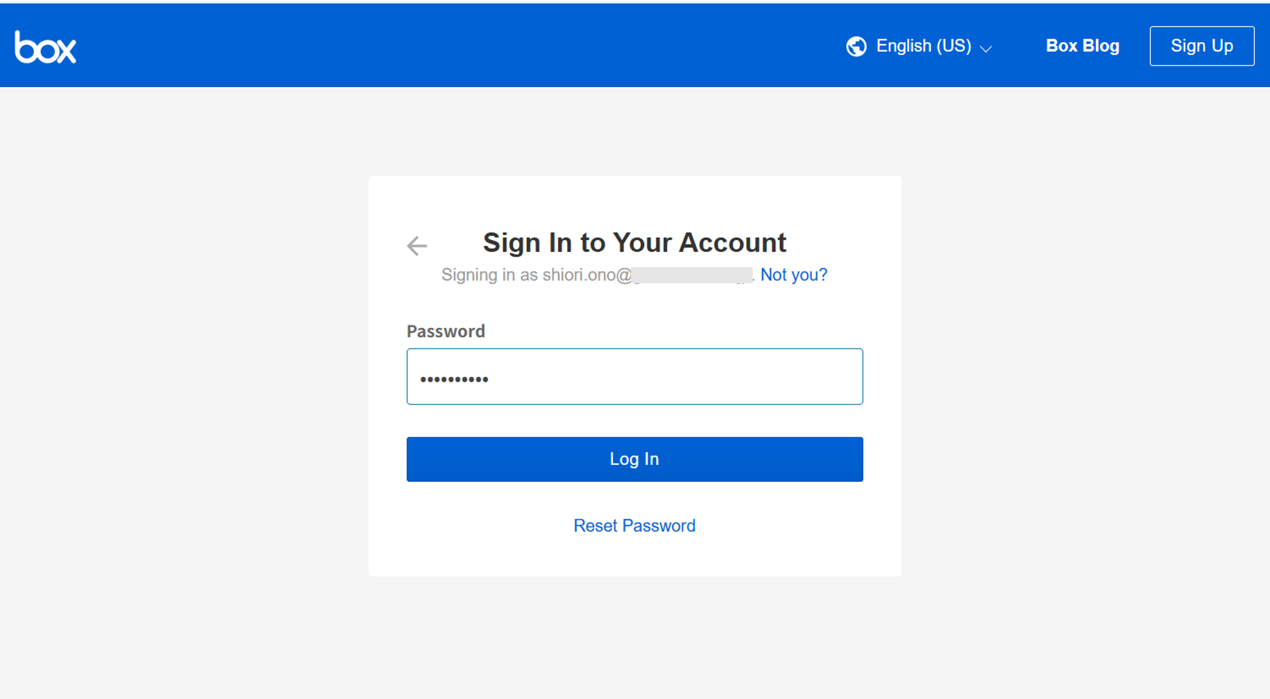 ダッシュボード上でBoxアプリケーションをクリックし、パスワードを入力します。