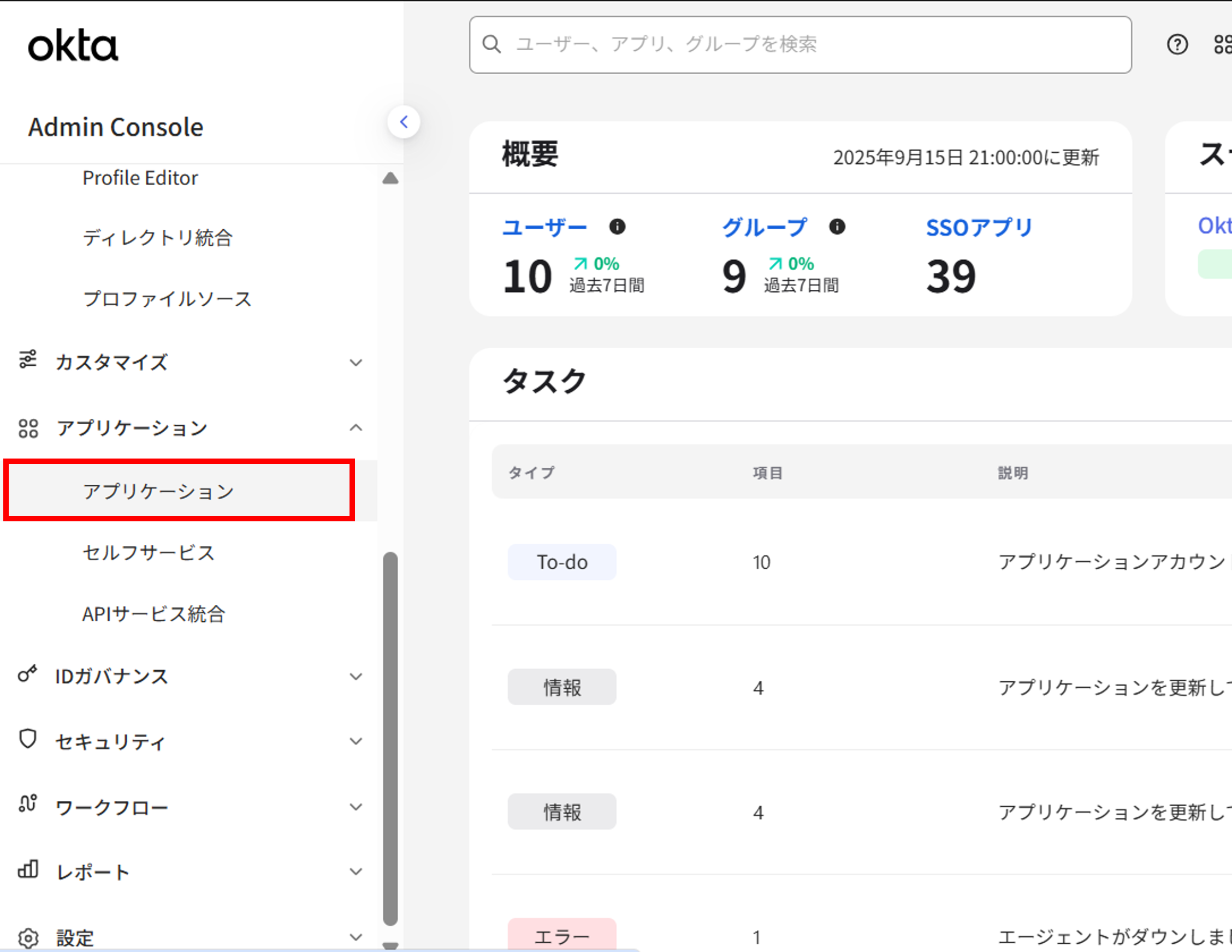 割り当てたユーザーでOkta のダッシュボードにアクセスし、サインインします。