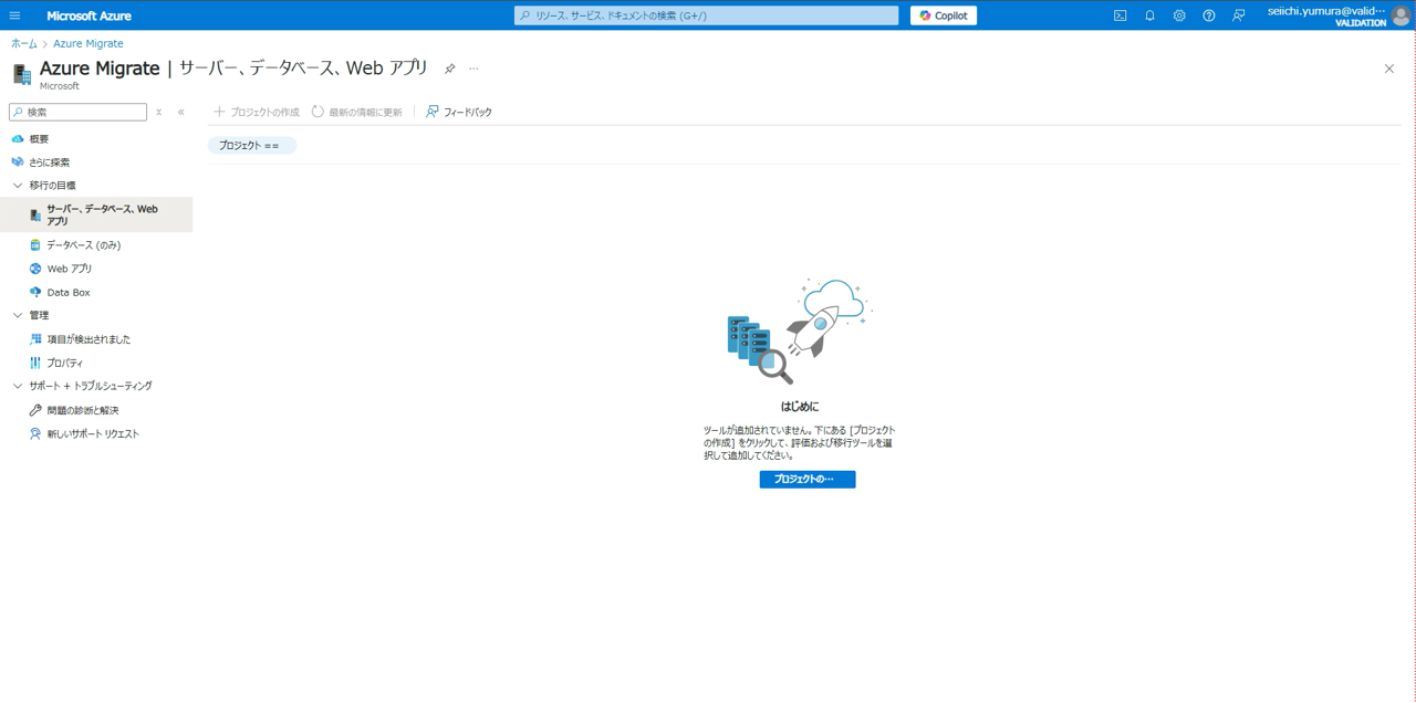 プロジェクト作成後は、「検出・評価」と「移行」のそれぞれのツールがあり、順番に実行していくことになります。