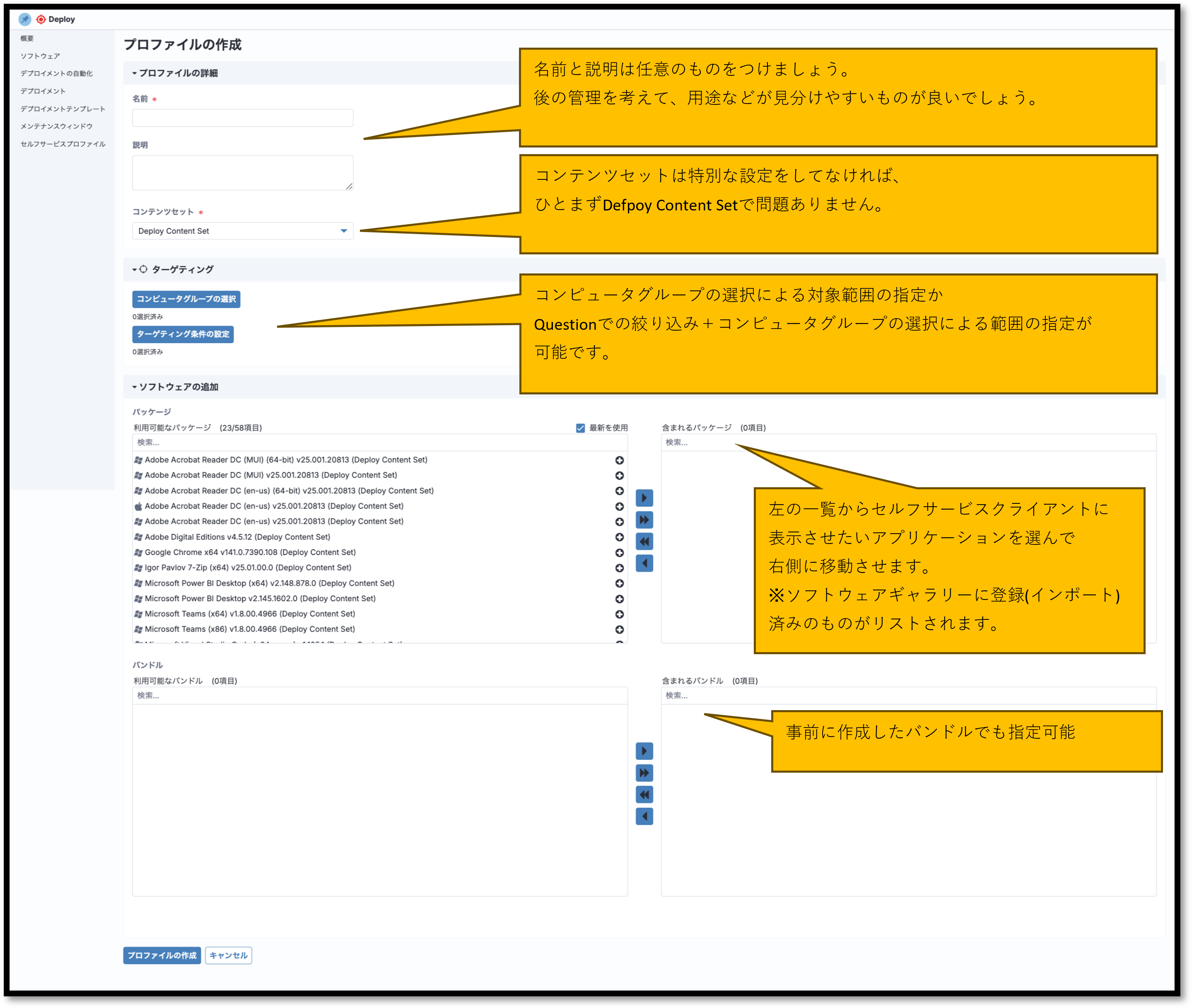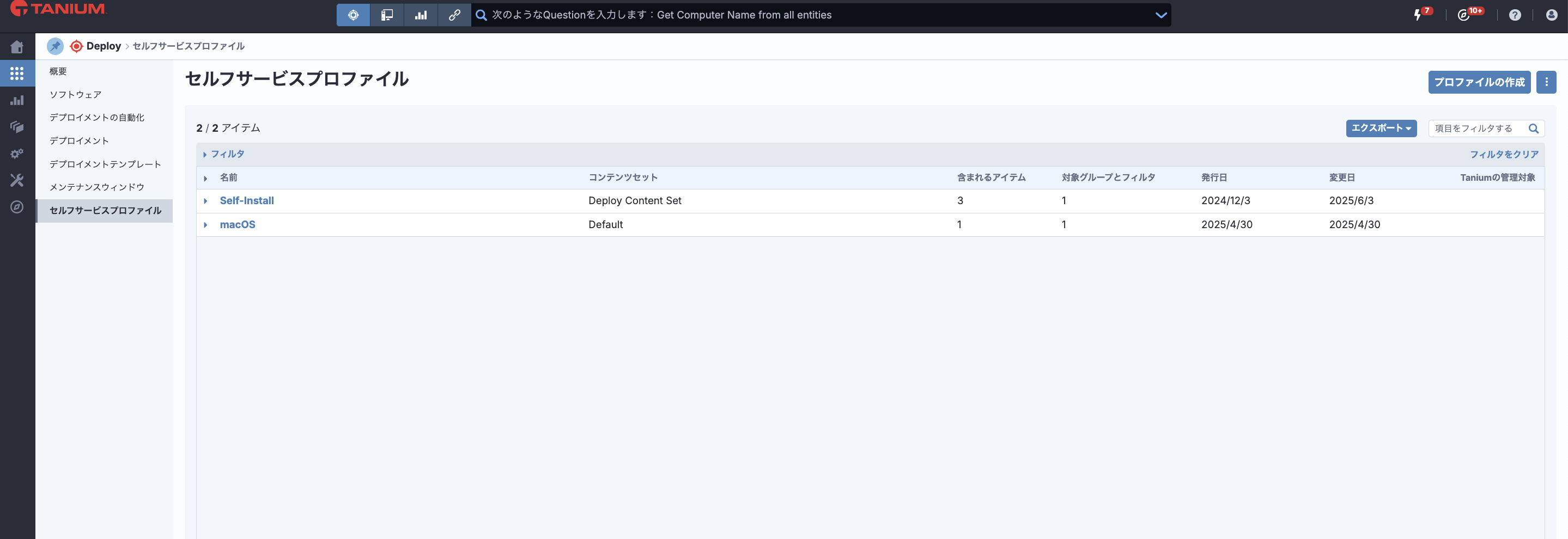 まずは左のメニューから[Module > Deploy > セルフサービスプロファイル]へ遷移しましょう。![]()
