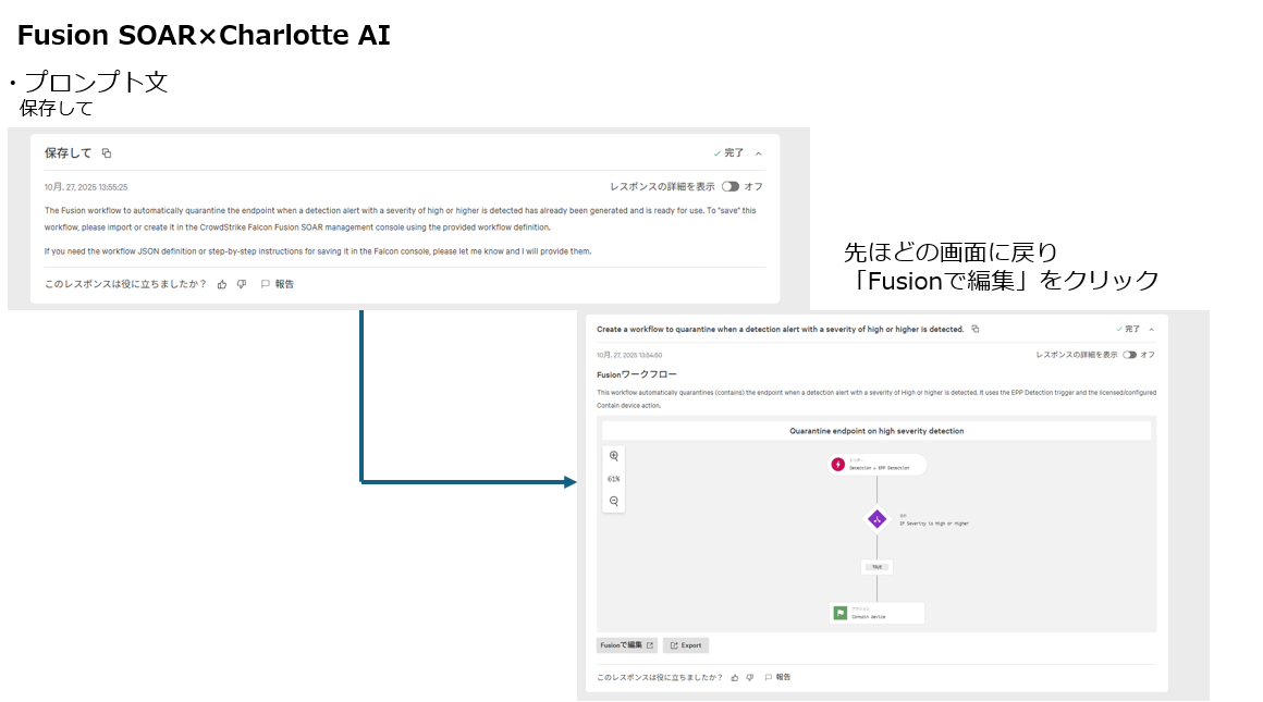 Charlotte AIとFusion SOARの連携により、これまで手作業で行っていたワークフロー構築が、自然言語だけで直感的に実現できるようになりました。