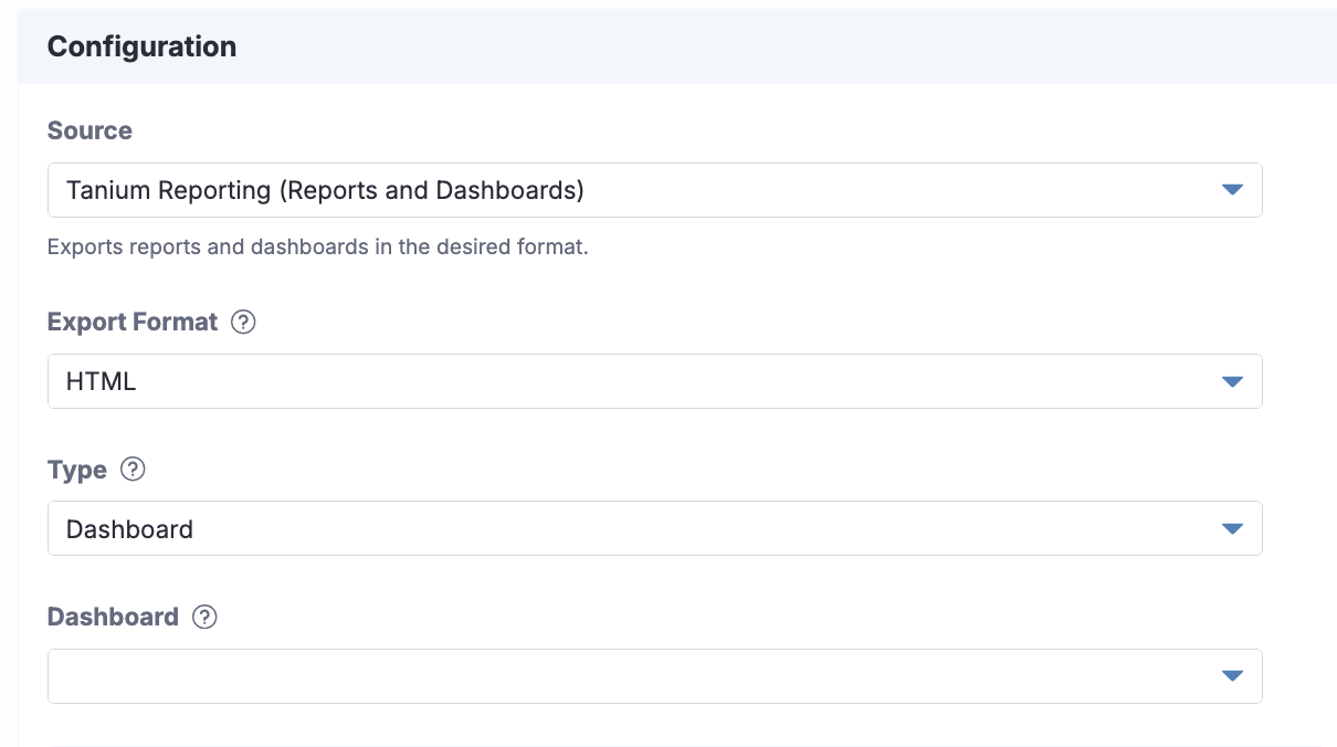 Tanium Reporting(Reports and Dashboard)の場合はHTMLでの出力(メール添付ファイル)のみになるので、フォーマットは一択です。