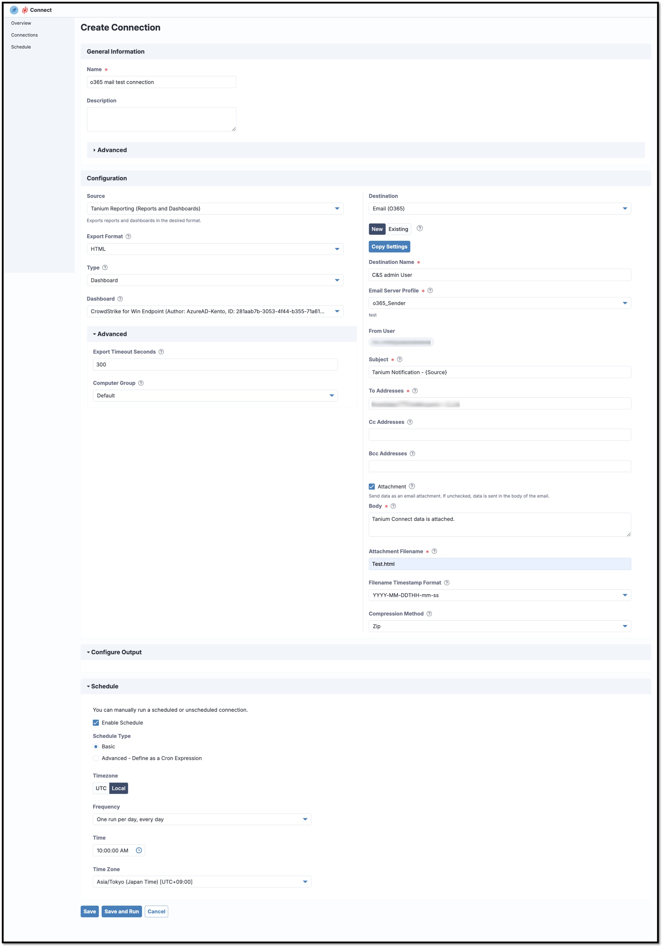 設定が完了したら、画面最下部の[Save(保存してスケジュールされたタイミングから実行)]か[Save and Run(保存して今すぐ実行/送信)]をクリックします。