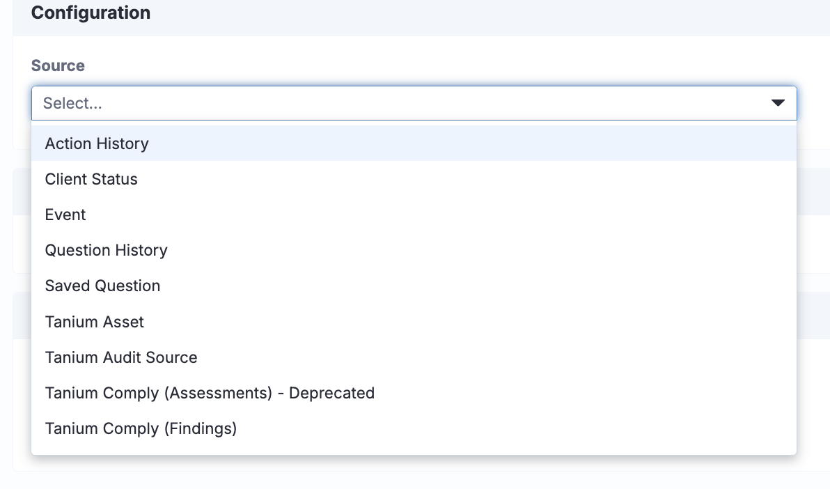 Tanium Reporting(Source Data):生のソース データを送信し、すべての宛先をサポート