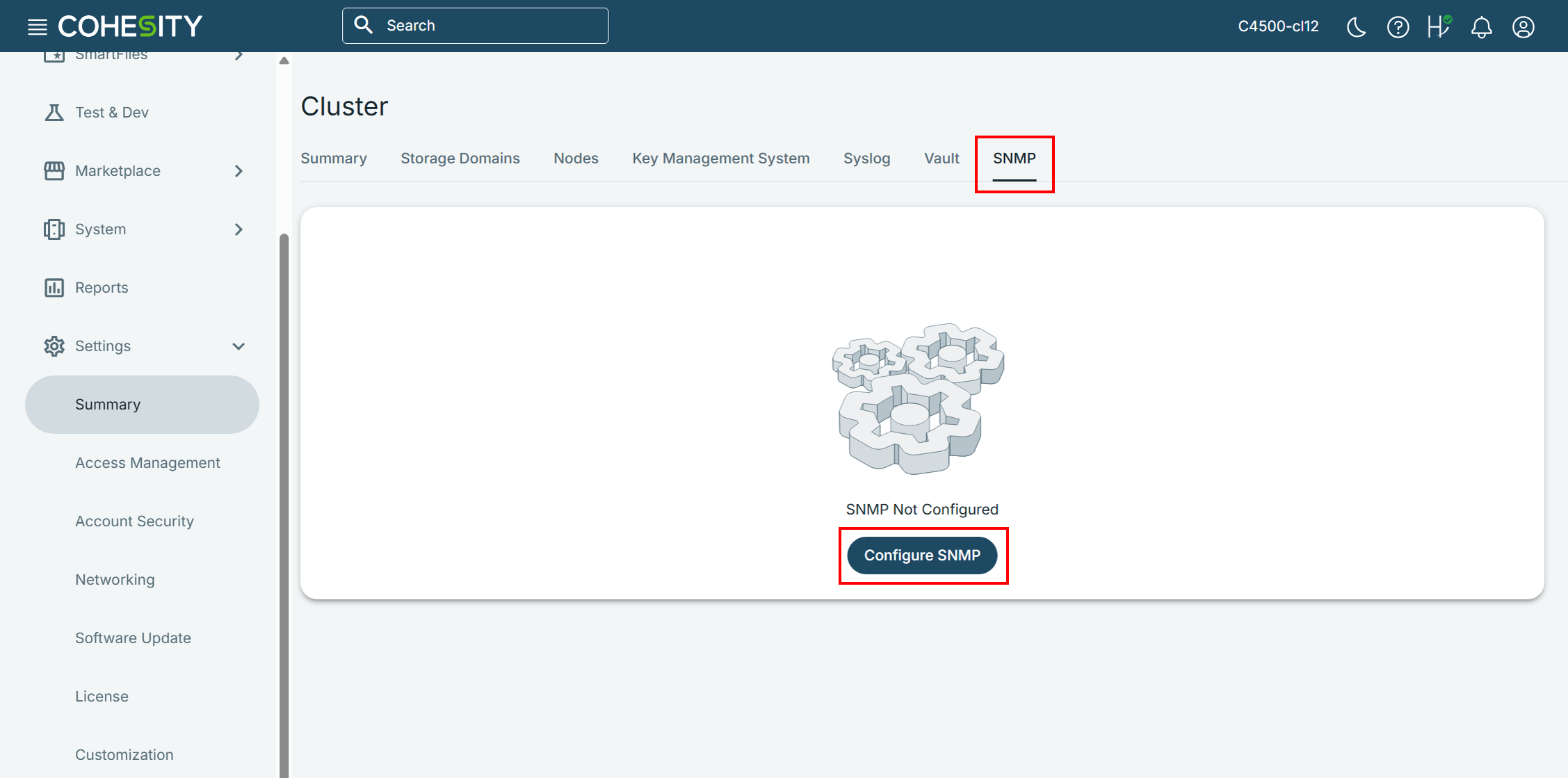 ダッシュボード上のナビゲーションメニュー内のSettingsからSummaryにSNMPの設定画面が変更されました。![]()