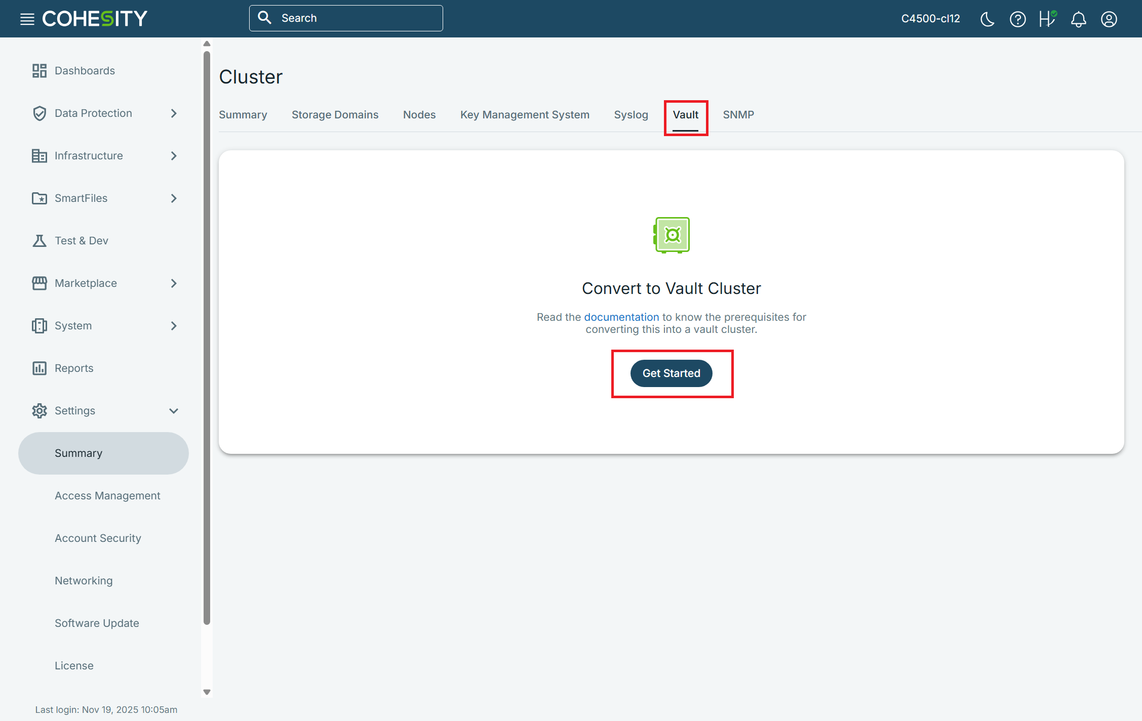 一度Vaultクラスターとして構成したクラスターを通常のクラスターへ戻す場合は、クラスターリセットを行う必要があり、クラスターリセットを行った場合クラスター内のデータは全て削除され新しいクラスターとして構成されますのでご注意ください。
