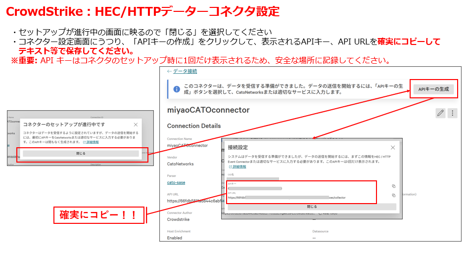 APIキーはコネクターのセットアップ時に1回だけ表示されるため、必ず控えておいてください。