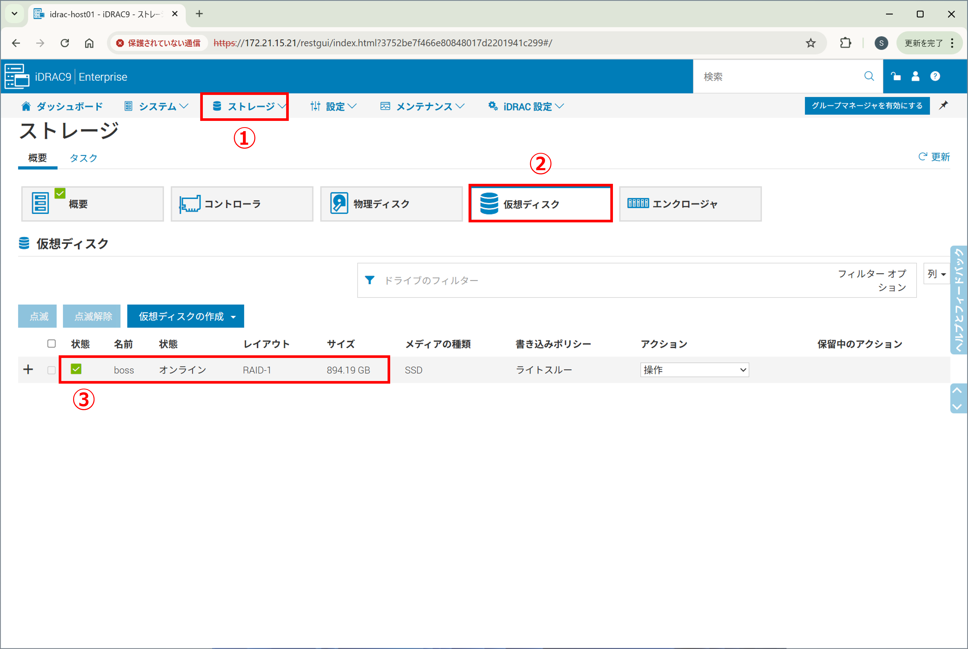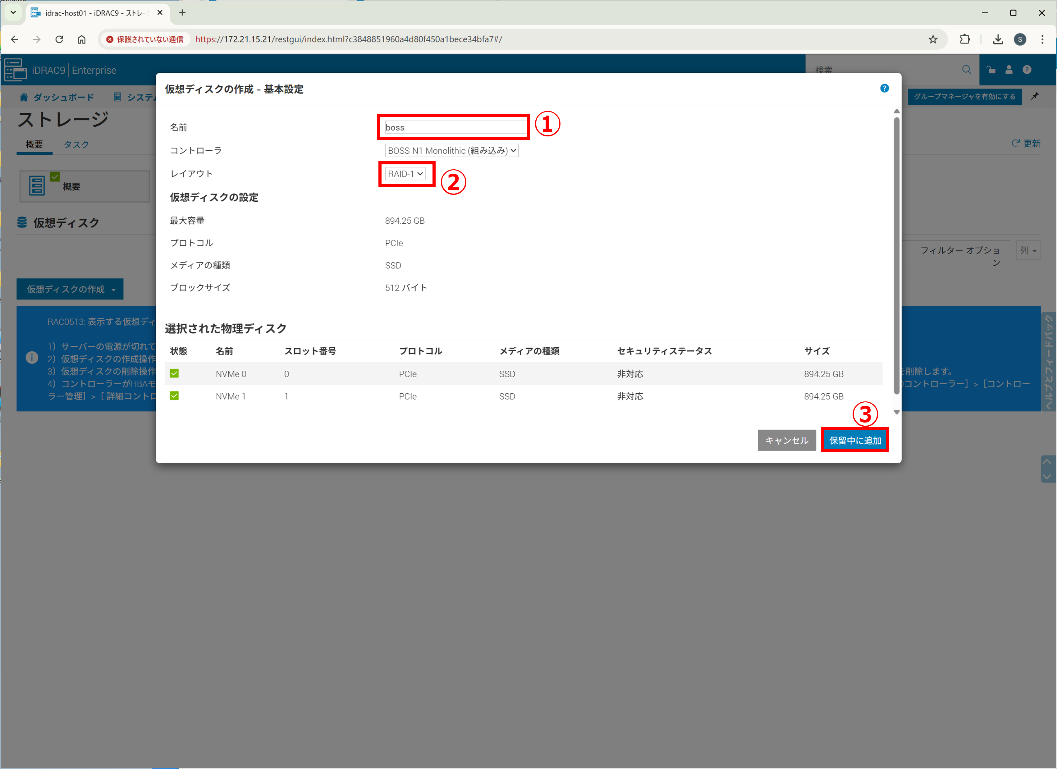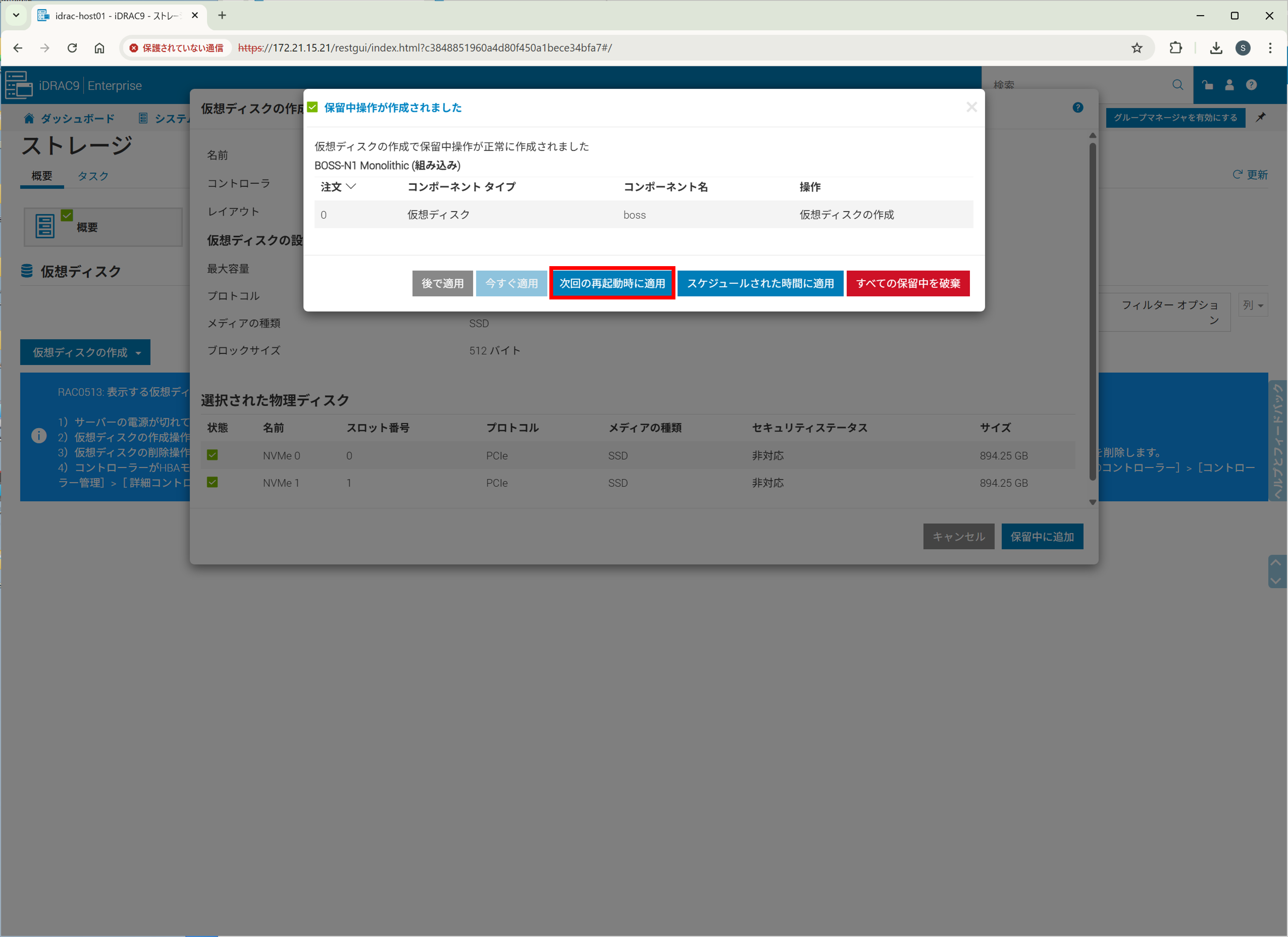 BOSS(Boot Optimized Storage Solution)は、Dellのサーバーに搭載されているOSブート専用のデバイスです。Azure Local OSはこのBOSSに作成した仮想ディスクへインストールします。