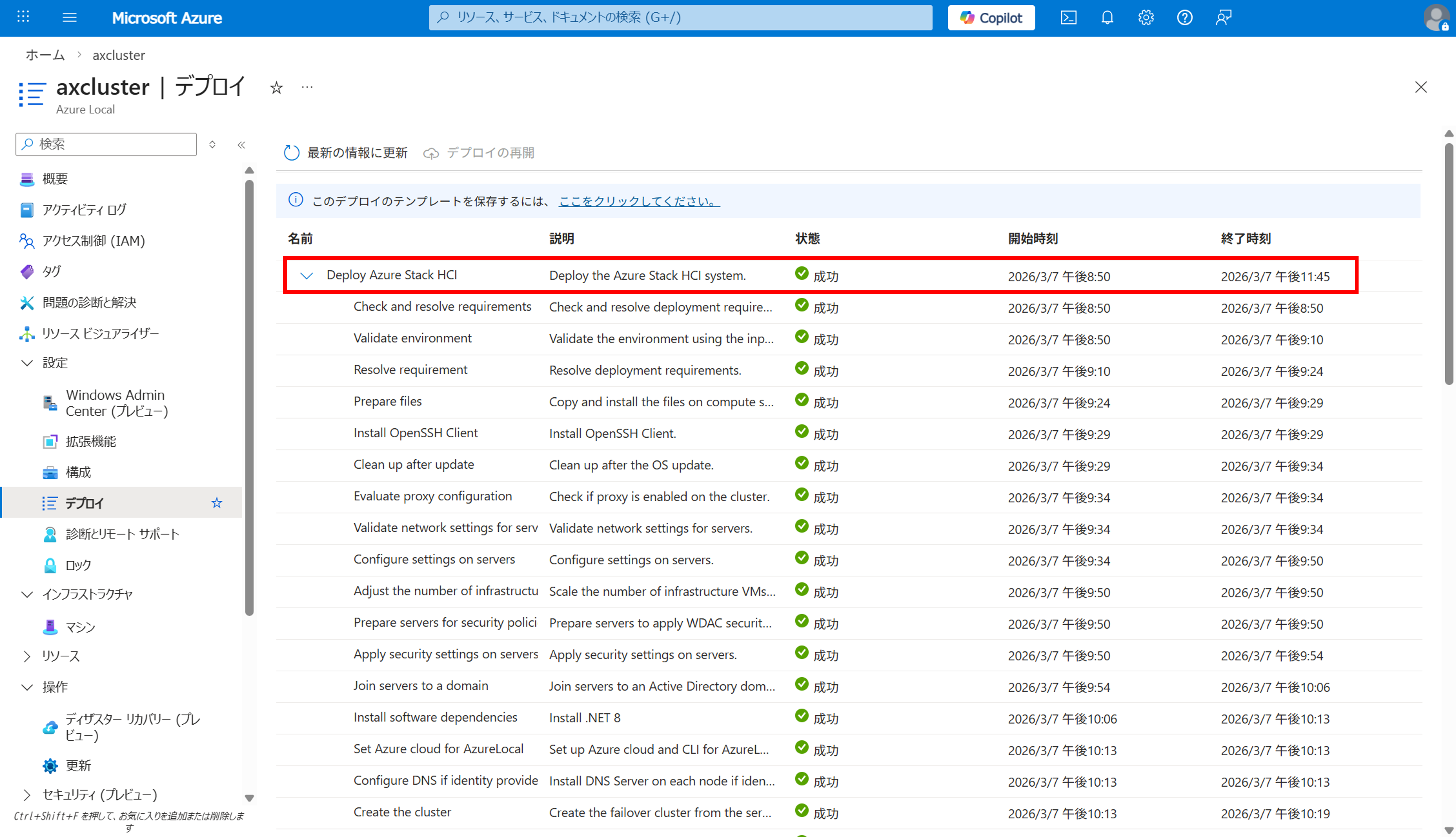 24.「Deploy Azure Stack HCI」というタスク名が正常に完了すれば、Dell AX System for Azure Localのデプロイが完了となります。