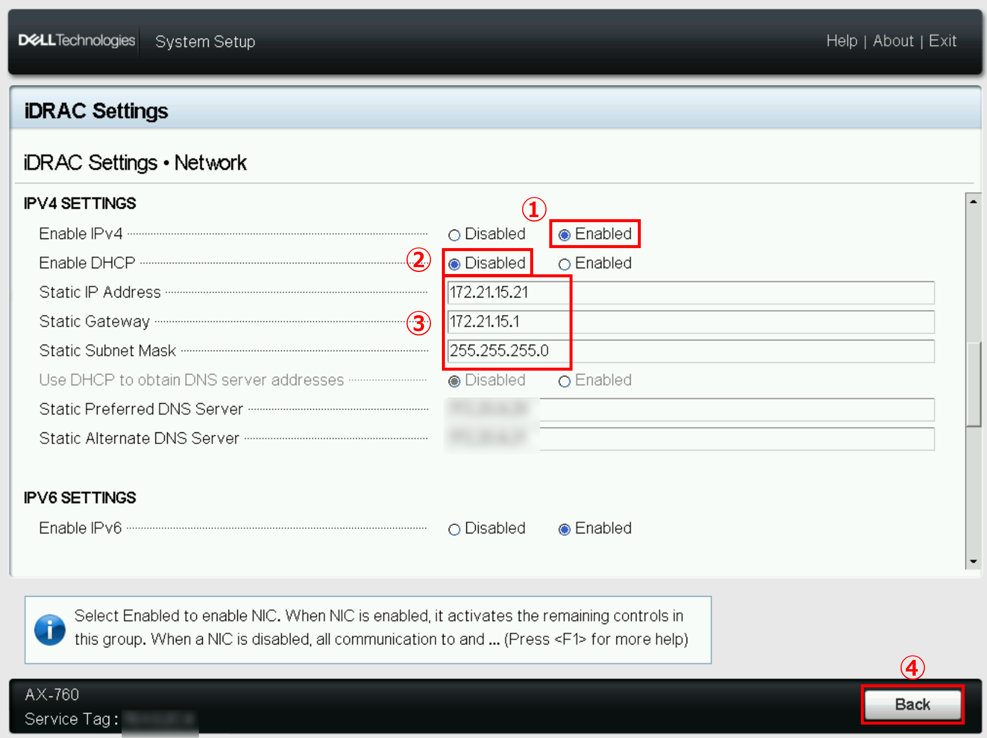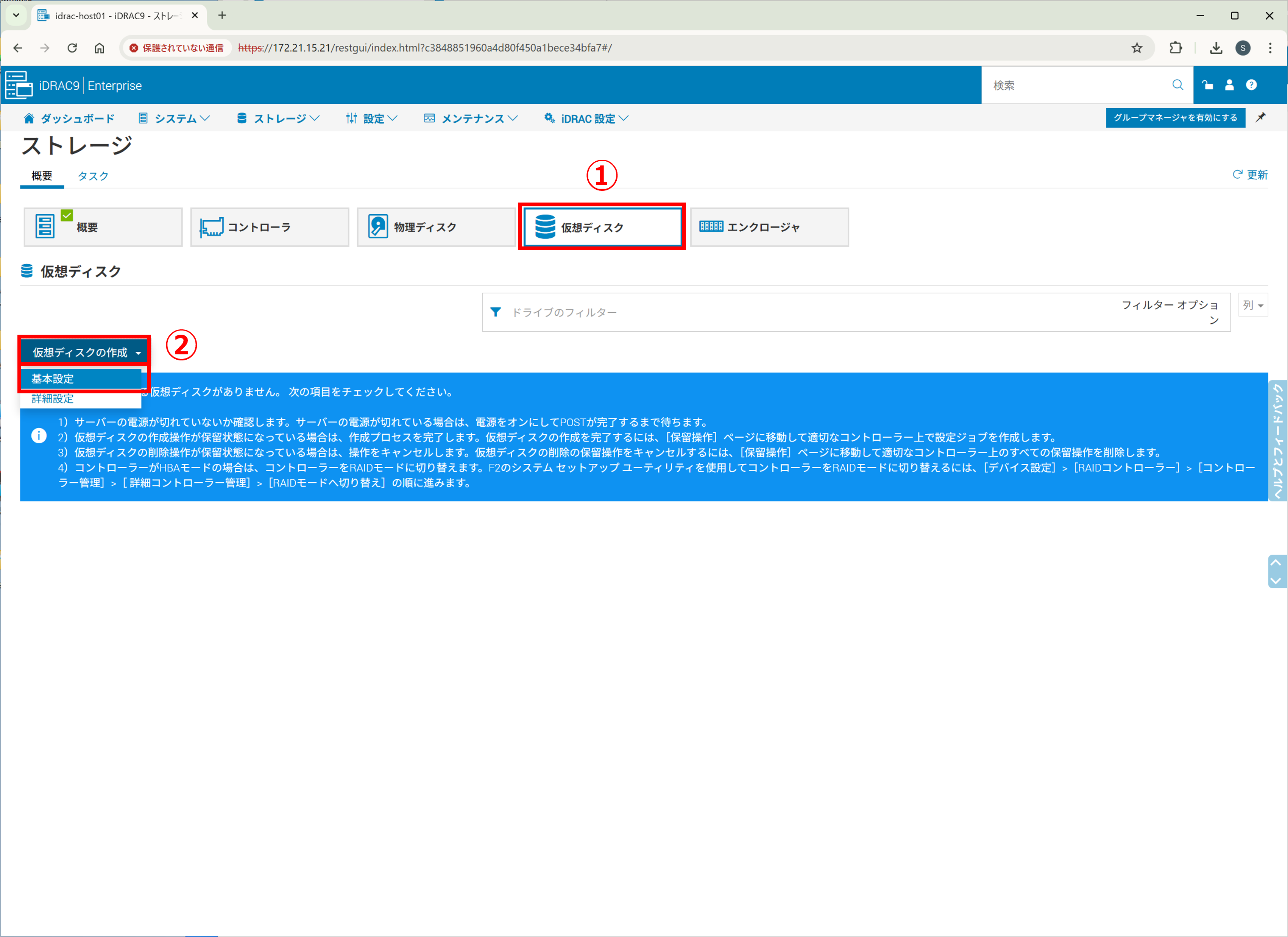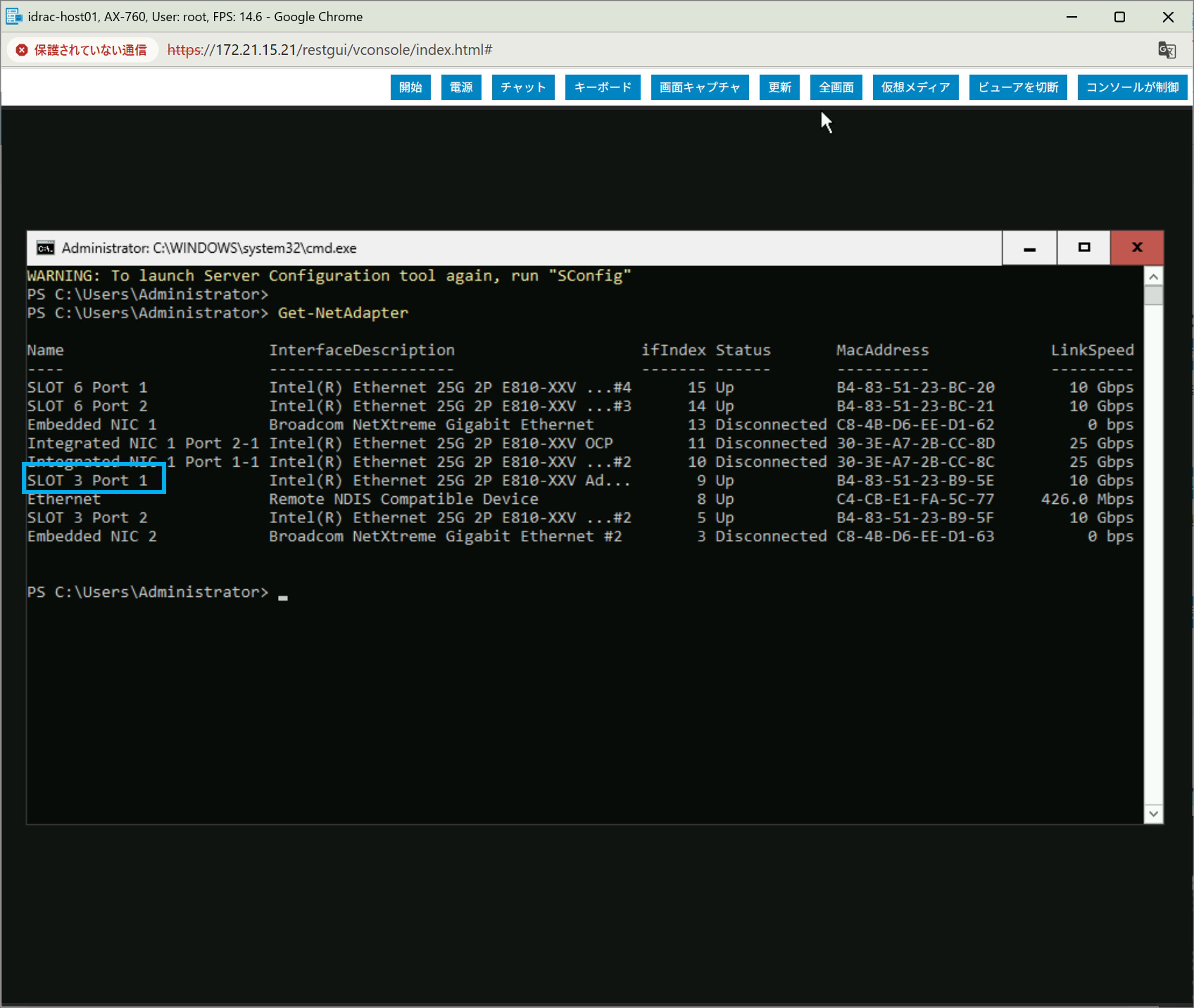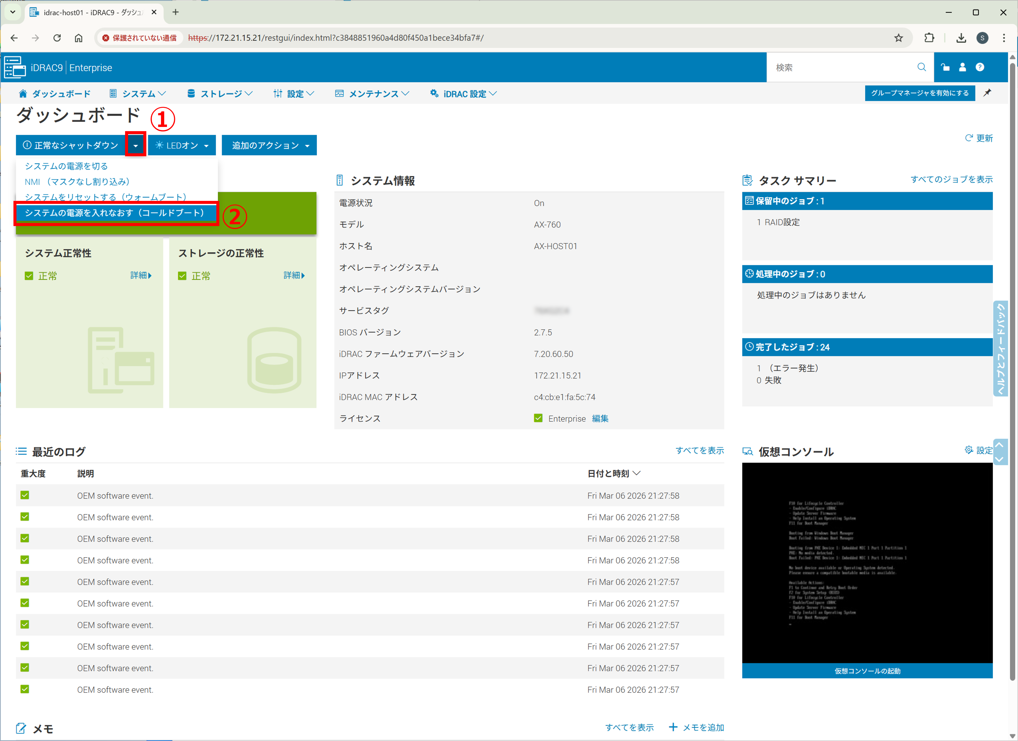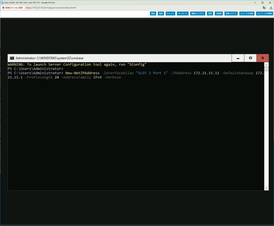Azure Local OSのインストールは「iDRAC 仮想コンソール」から行います。そのため、各ノードのiDRACへアクセスするために、iDRACに管理IPアドレスを設定します。
