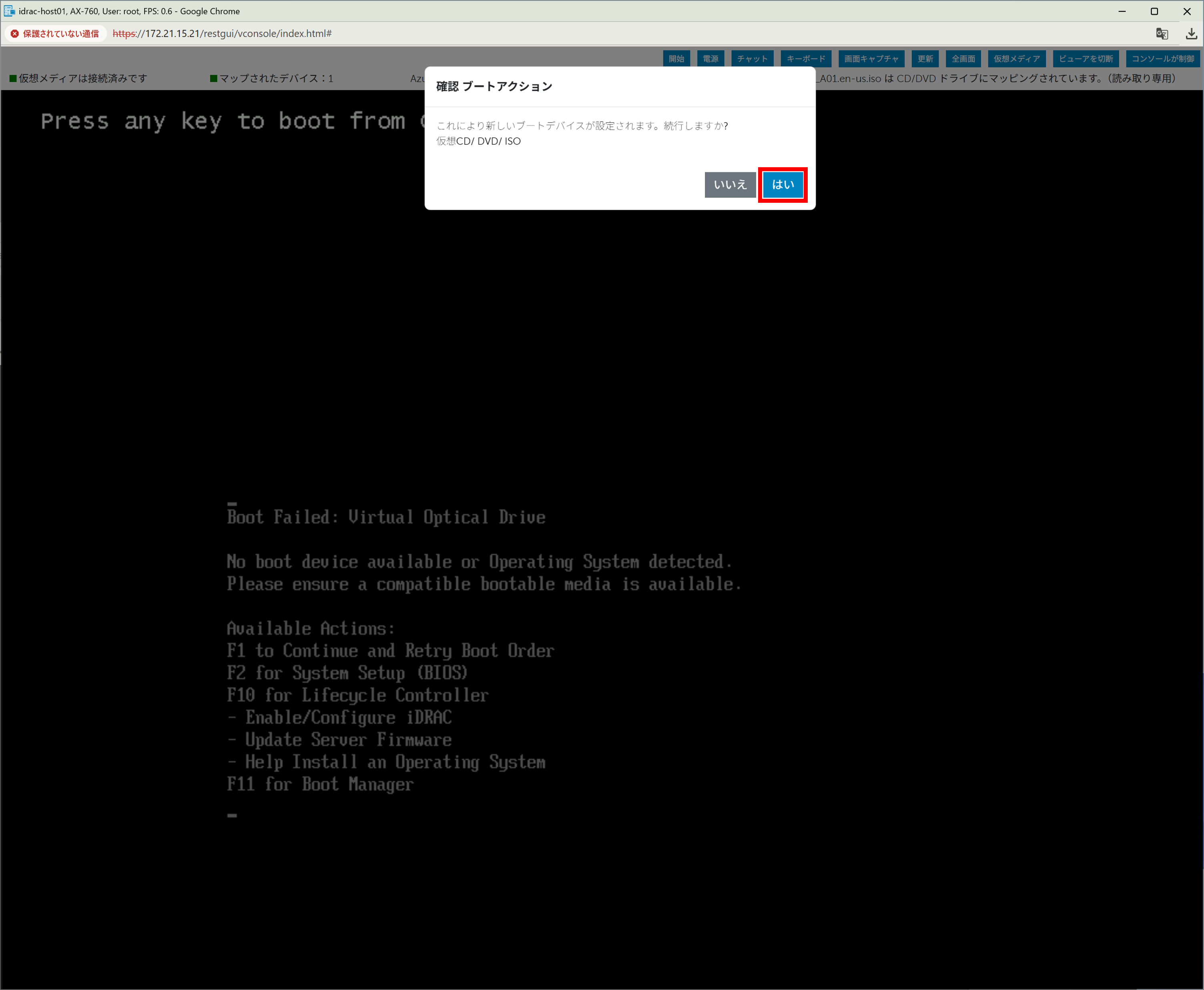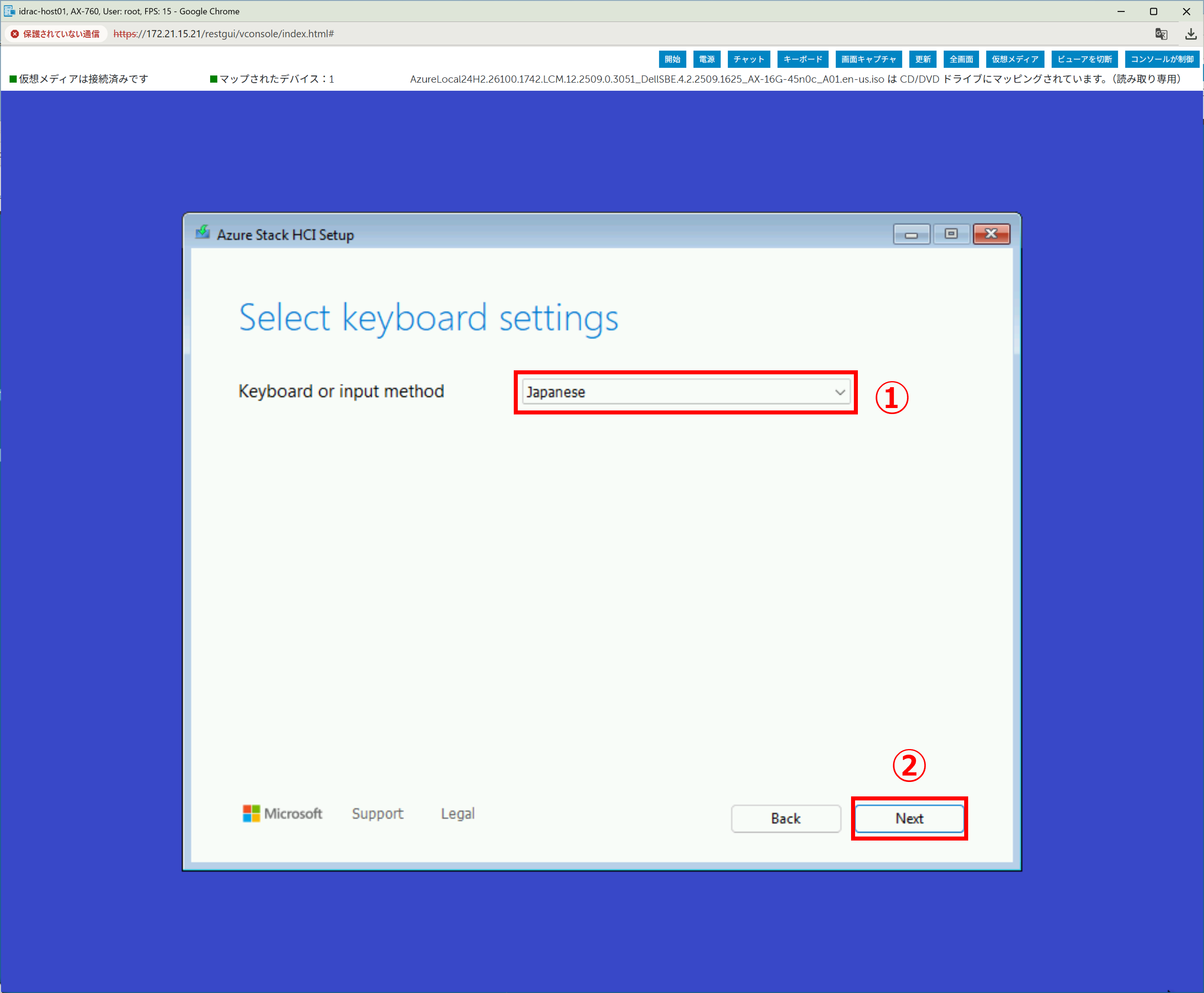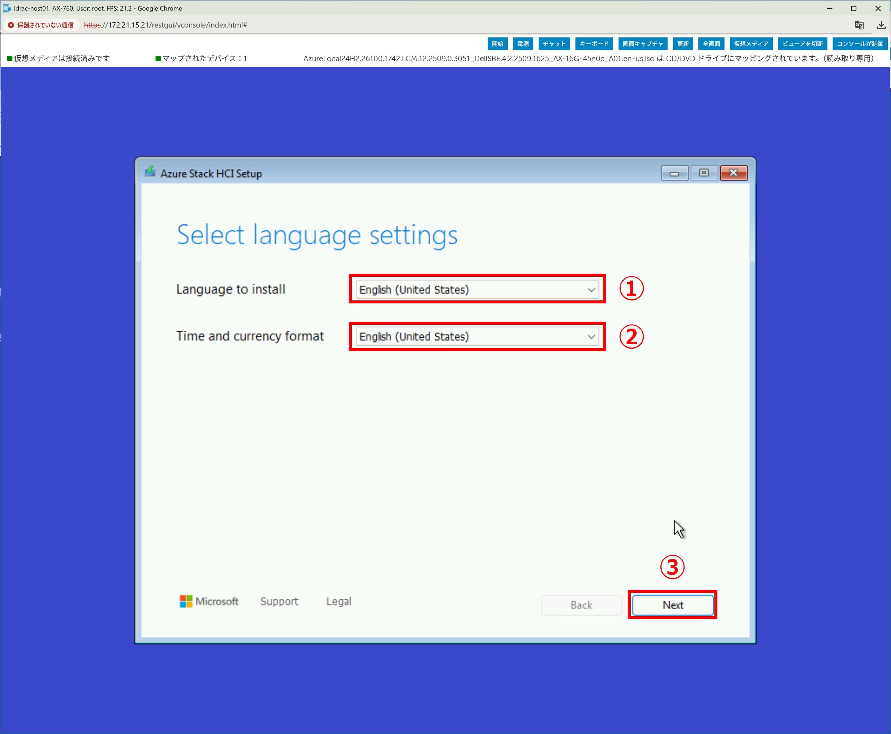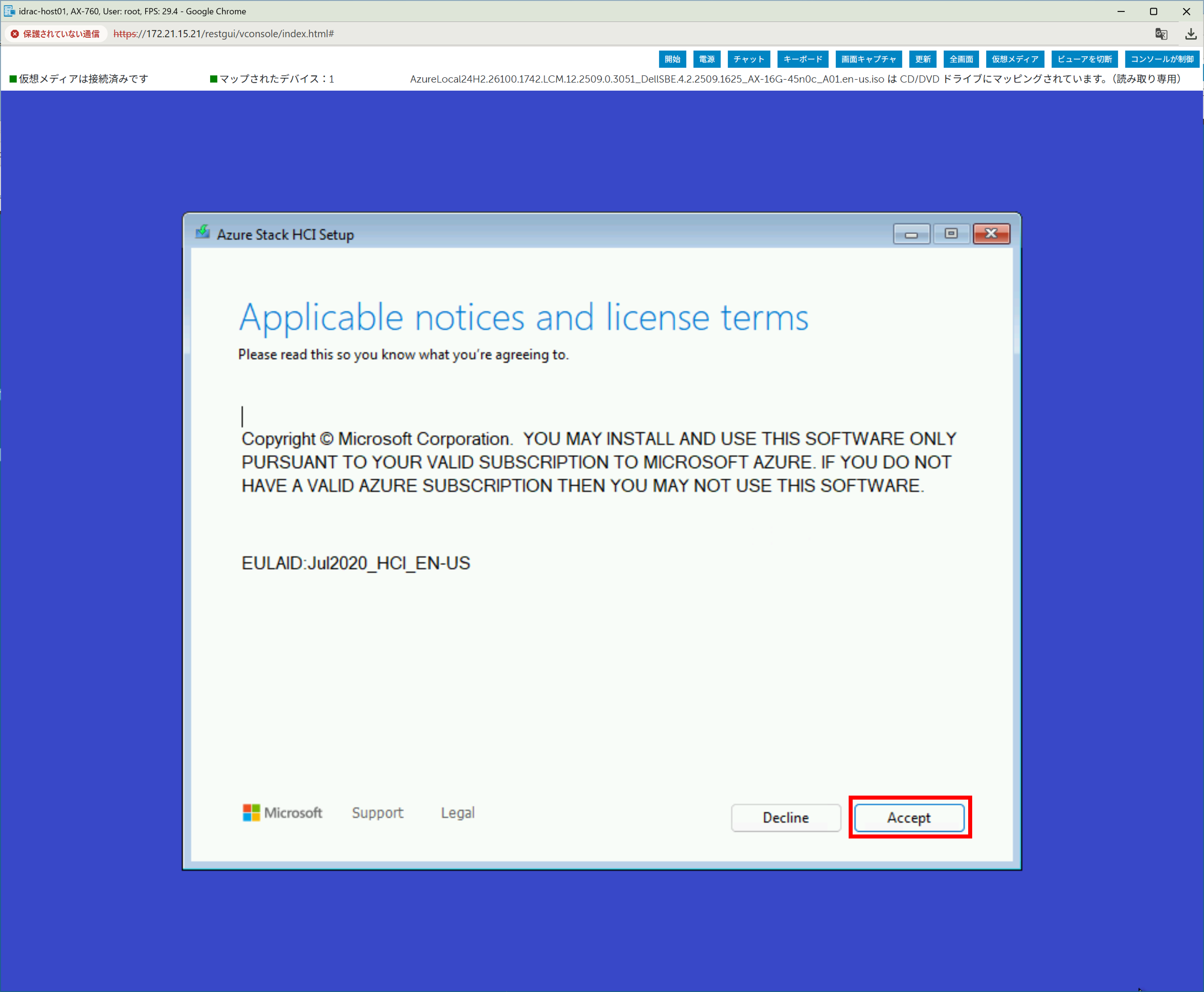 iDRAC仮想コンソールからAzure Local OSをインストールします。