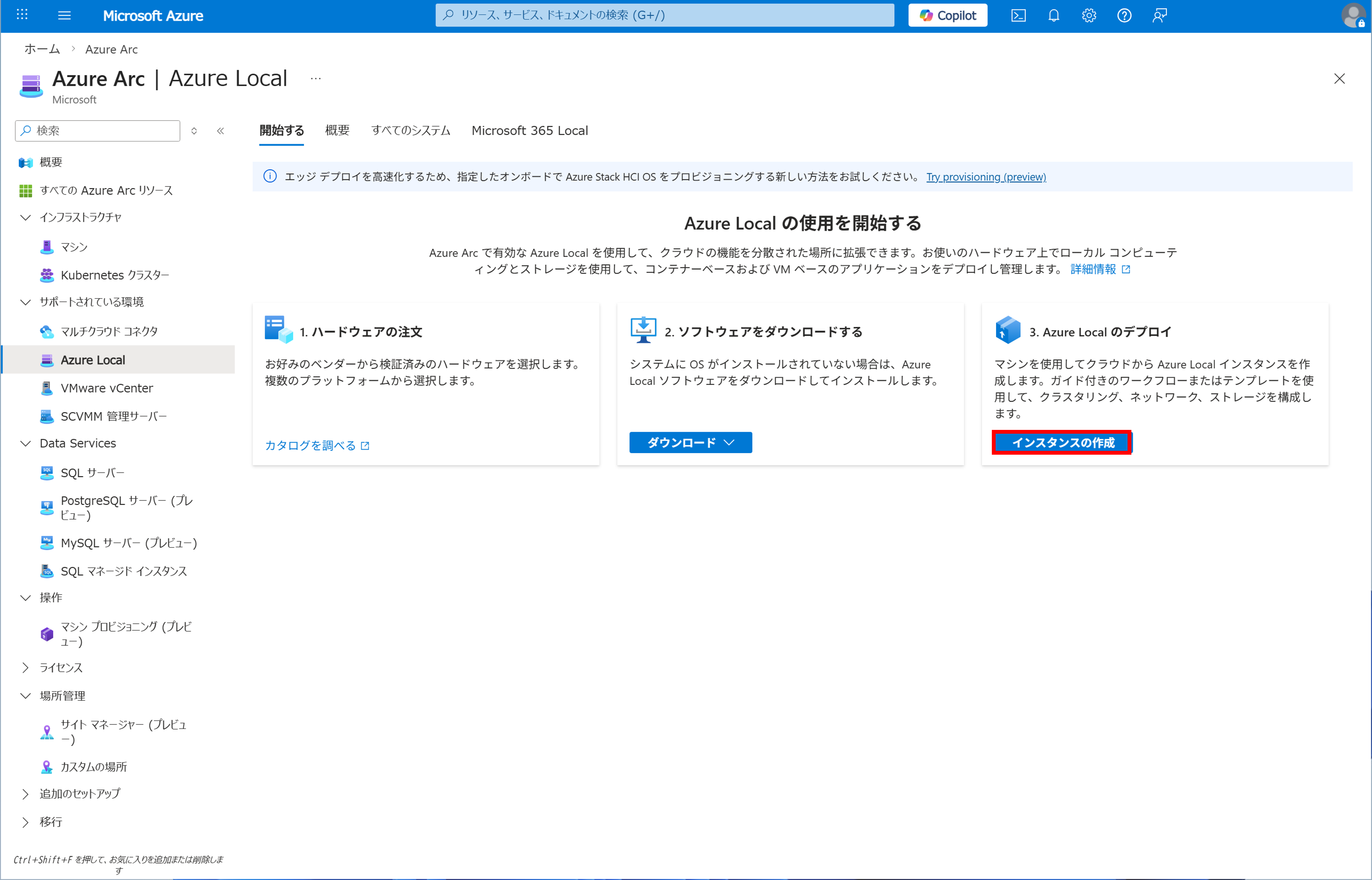 いよいよ、Azure PortalからAzure Localのデプロイを行います。