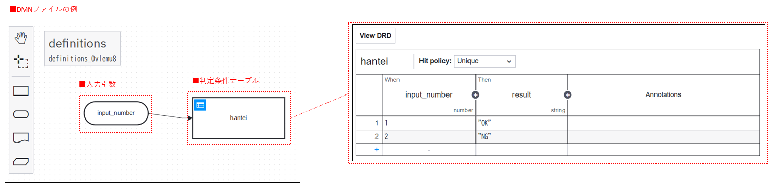 ※現在はプレビュー版で動作が不安定な部分もあるため、DMNファイルの作成方法は割愛します。