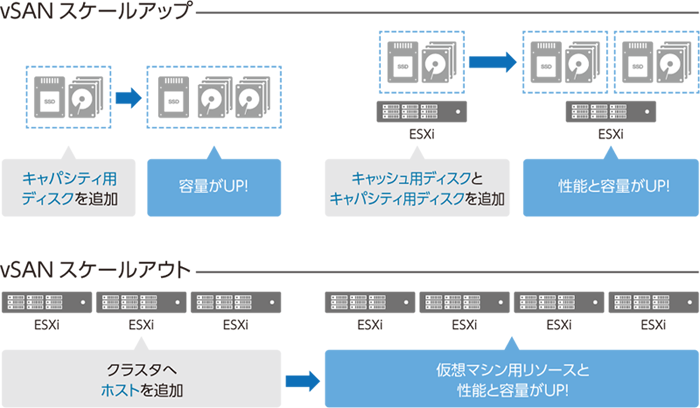 VMware vSANは vShpere 製品群の再編とあわせて新たなエディションでの管理機能として提供されます。